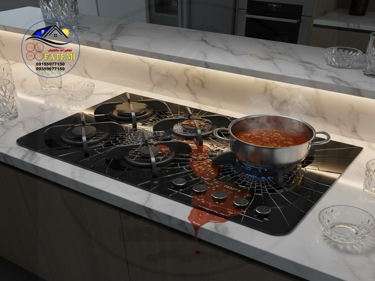 • استفاده از ظروف با اندازه نامتناسب یا خیلی سنگین روی سطح شیشه.