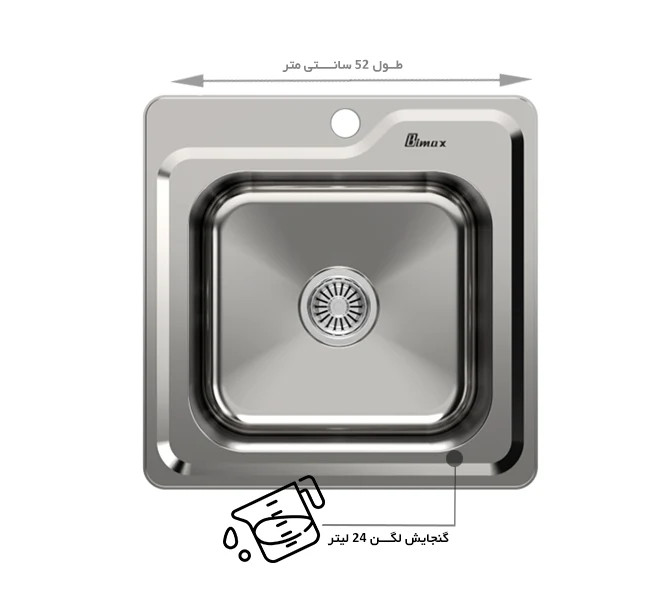ابعاد کلی سینک: ۵۲ * ۵۲ سانتی متر
