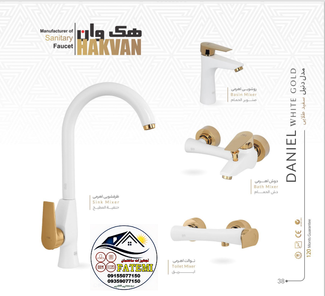 شیر اهرمی هکوان مدل دنیل سفید طلایی