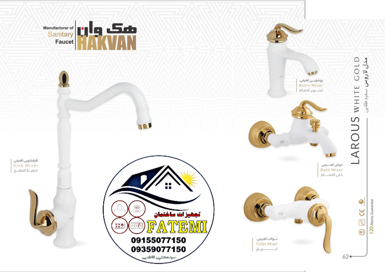 شیر روشویی  هکوان مدل لاروس سفید طلایی
