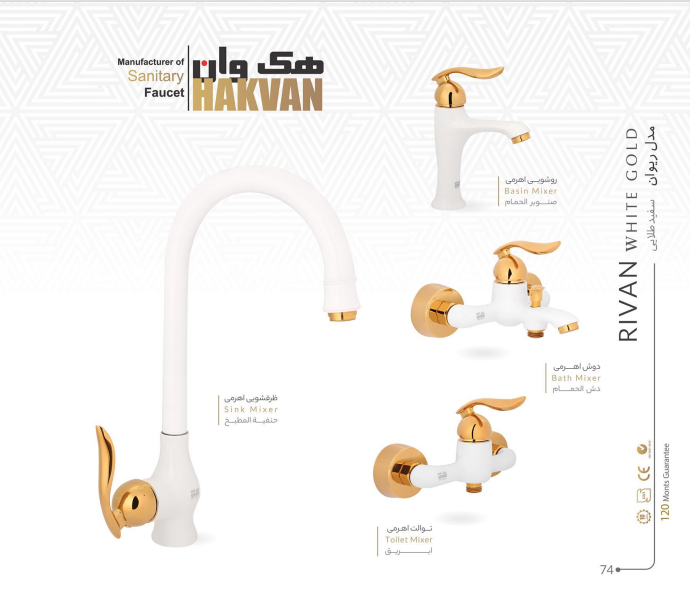 شیر اهرمی روشویی هکوان مدل ریوان سفید طلا